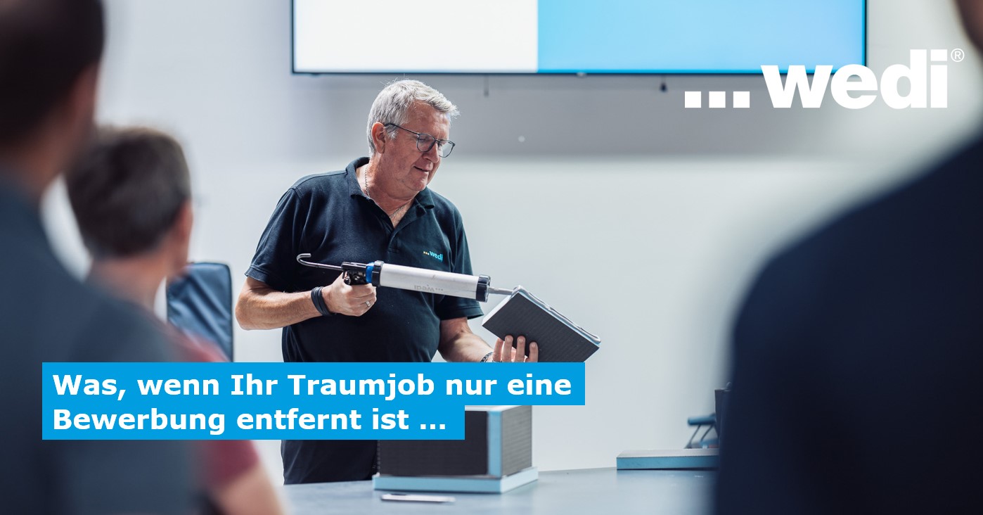 Nutzen Sie die Chance, Ihre Talente in einem zukunftsorientierten Unternehmen einzubringen. Werden Sie Teil der international rund 550 Mitarbeitenden der wedi Gruppe. Als Marktführer für innovative Systemlösungen im Nassraum stehen wir für Qualität und kundenorientierte Services. Bringen Sie Ihre Ideen ein und gestalten Sie aktiv Veränderungen mit.